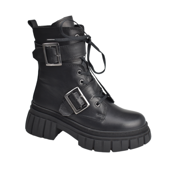 Kalın Atkılı Siyah Hakiki Deri Bot