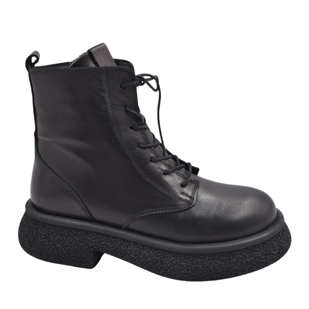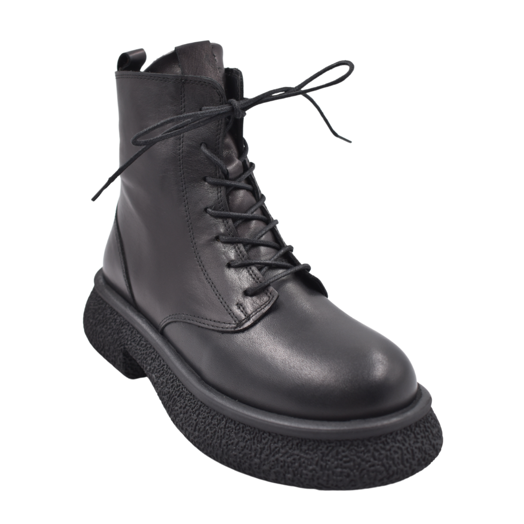 Siyah Hakiki Deri Bağcıklı Bot - Impero Shoes